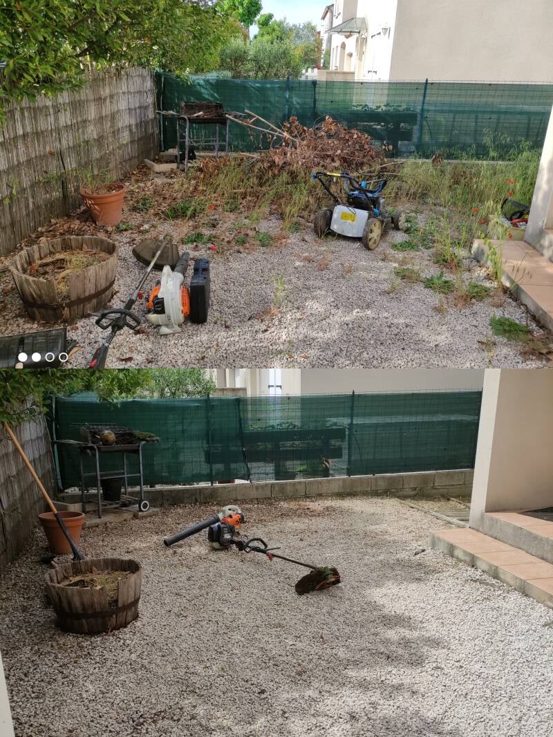 Débroussaillage, tonte et remise a niveau d'un jardin abandonné.